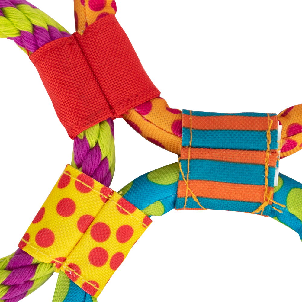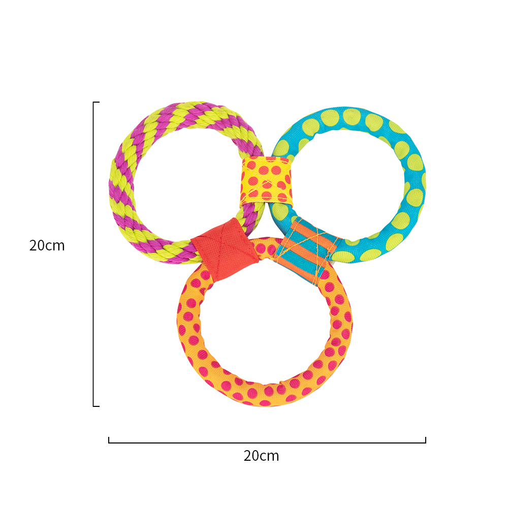 Durable Dog Toy with Rope Rings – Chew-Resistant Interactive Play for Puppies & Dogs Colorful3-Ring Design for Tug & Fetch Games